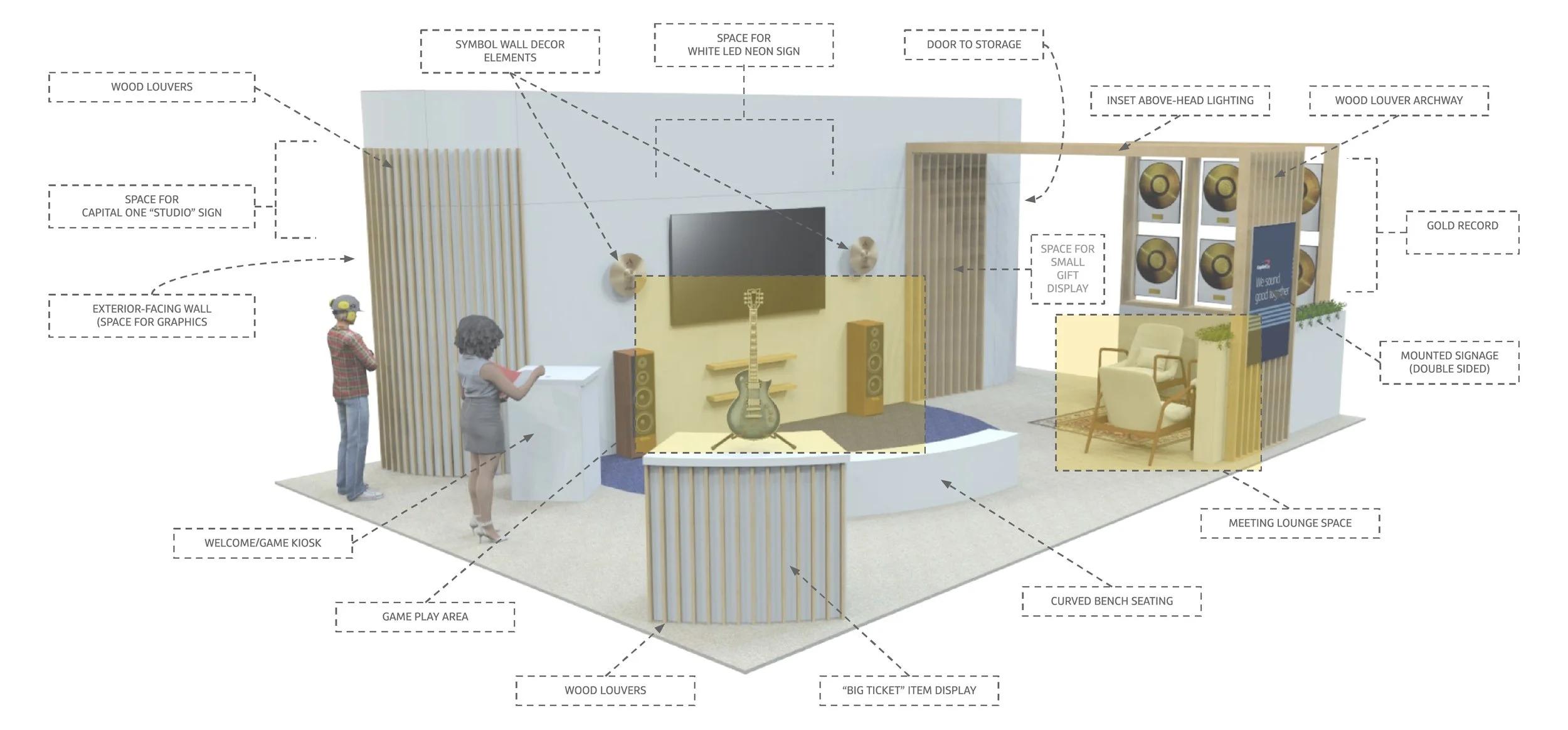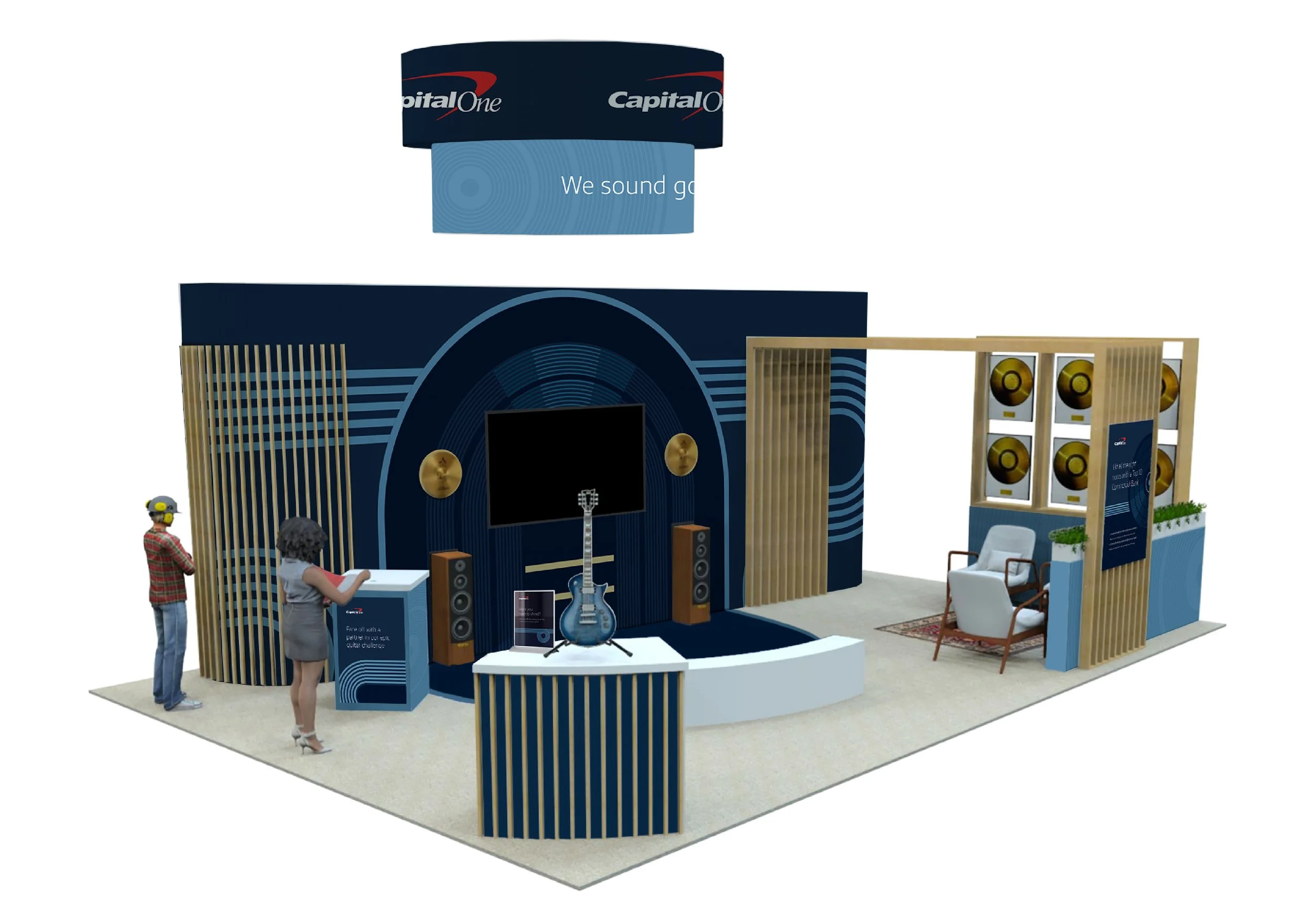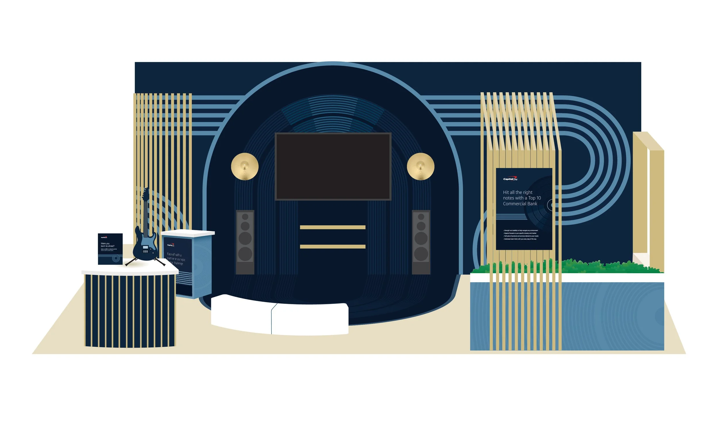Centered on the theme “Harmonious Partnership,” our activation used music as a metaphor for the seamless, collaborative experience clients can expect when working with Capital One. Inspired by Nashville’s iconic creative energy, the space conveyed the idea that successful business relationships—like great music—are built when partners work in sync. Visual and interactive elements showcased the perfect harmony between Capital One’s technology, service, and trusted advisor mindset—hitting all the right notes to show how the TM team helps clients stay in rhythm and confidently move their business forward.