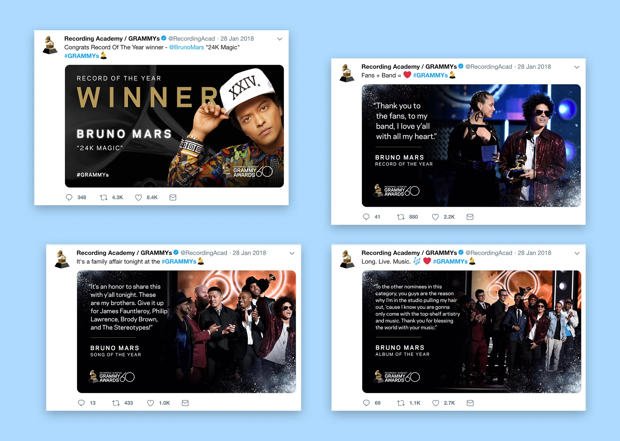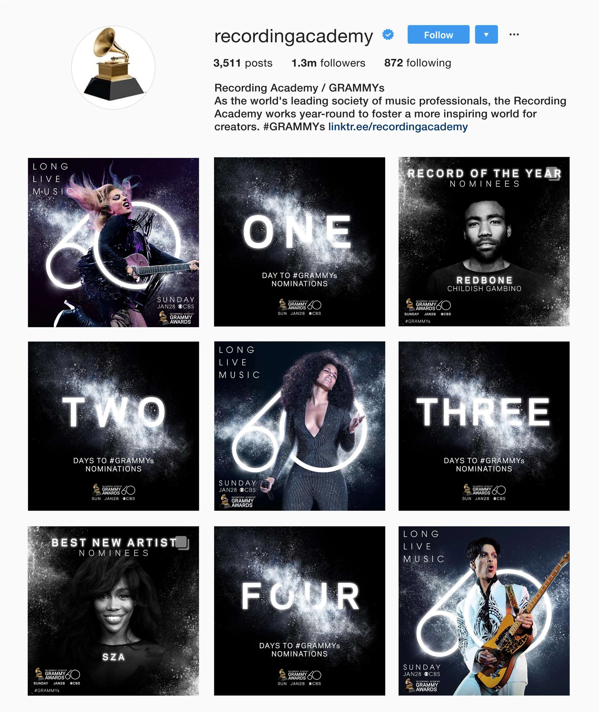 A variety of organic content created to promote the 2018 Grammy Awards on various social platforms.