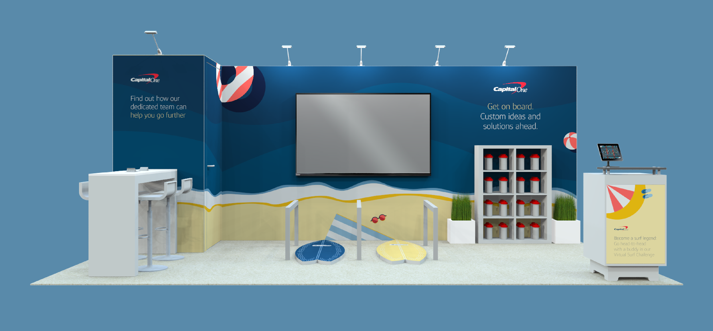 As a top 10 Commercial bank, Capital One and their Treasury Management team is known for delivering tailored solutions that clients need to reach their goals and stay ahead of the competition. To bring this idea to life, we designed an experience that showcased our expertise and ability to be a true partner for change–using surfing language and playful imagery to reinforce the theme of navigating challenges with confidence and agility.